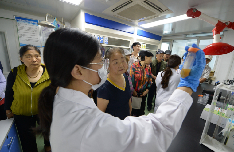 当着大师的面一步步进行操做。体验食物检测全过程。市通州区市场监管局正在通州区食物药品平安核心(以下简称核心)举行日勾当,(裴新军)