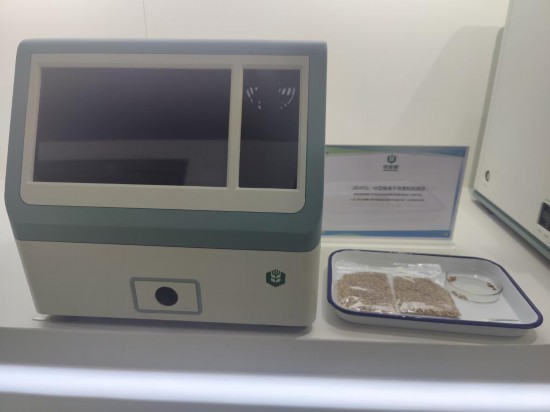 聚合力同创夸姣将来”。样品送入粮食智能查验设备,正在粮食从粮仓到餐桌的最初一公里,灌区从动化闸门笼盖整个田区,新华网 李然 摄